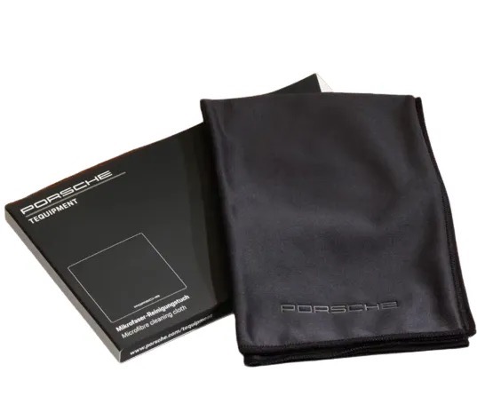 Pano de microfibra de alta qualidade com a inscrição “PORSCHE” em relevo. Para uma limpeza eficiente e suave das telas e outras superfícies delicadas no interior de seu veículo.